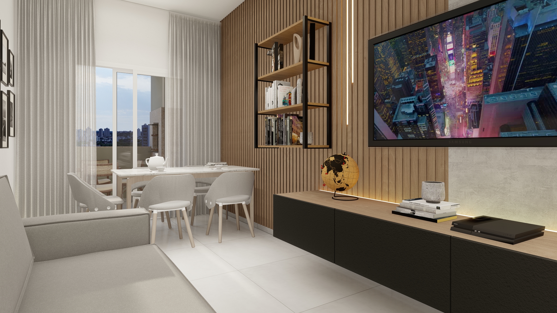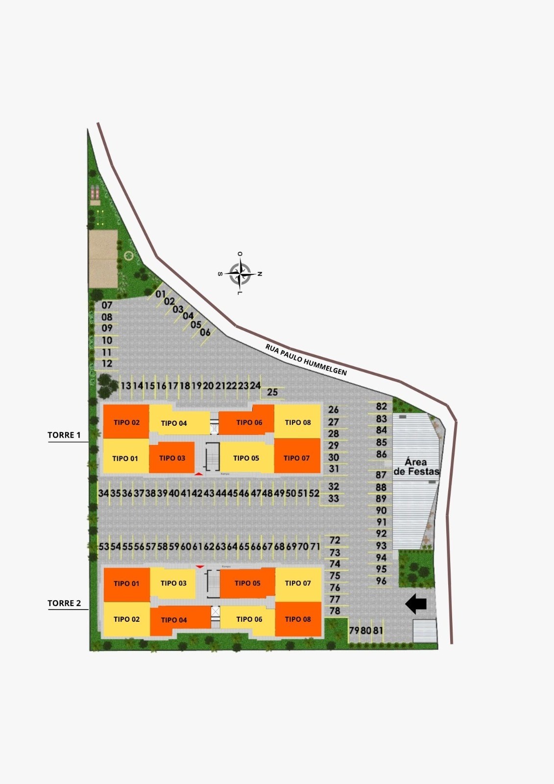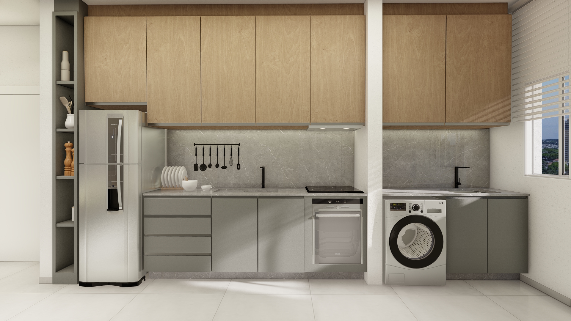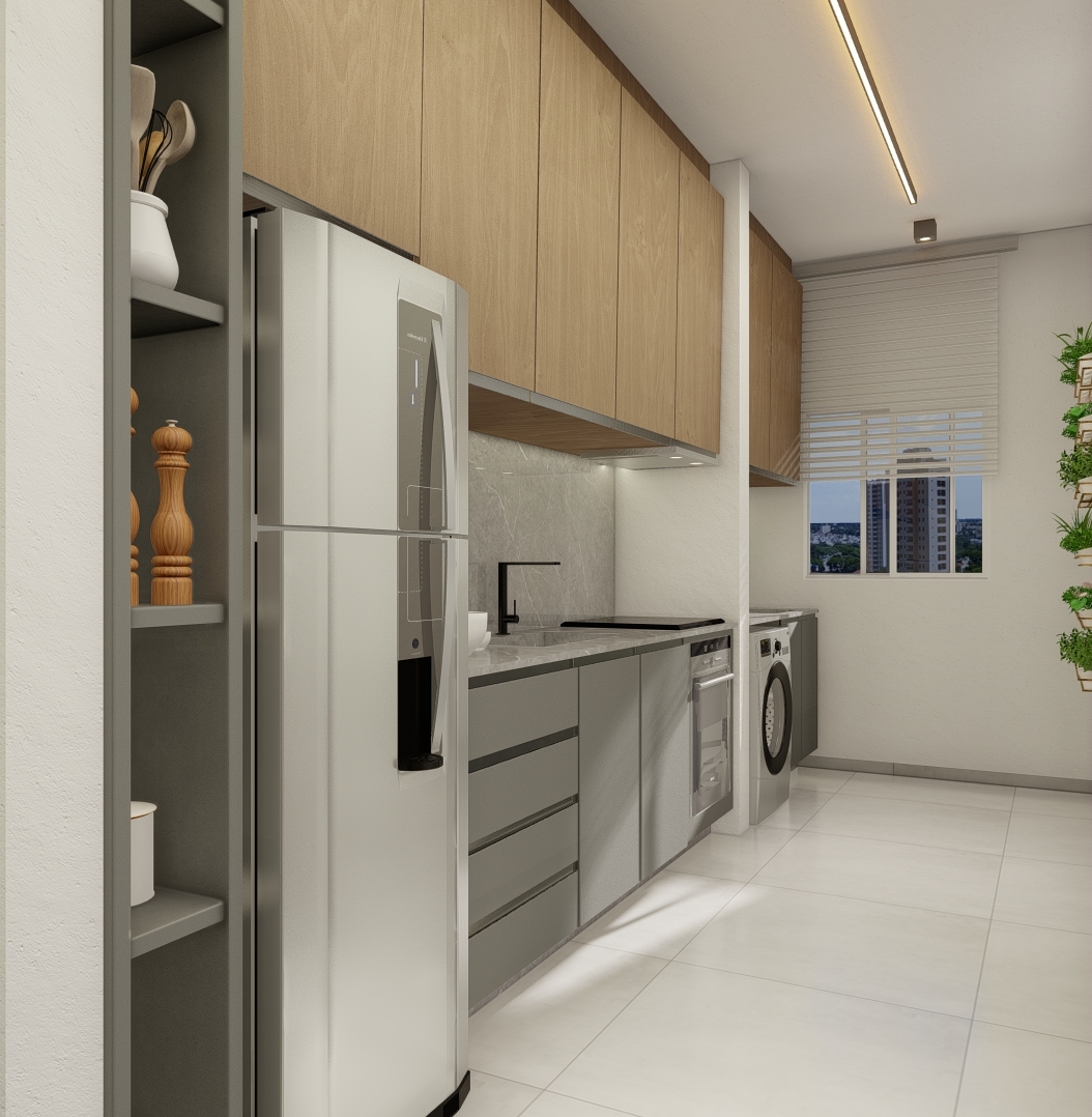 Os apartamentos são modernos e funcionais, com 2 quartos, 1 banheiro, sala e cozinha integradas, área de serviço e 1 vaga de estacionamento.